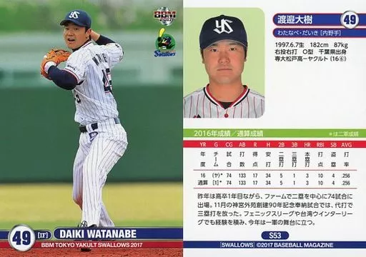 BBM/レギュラーカード/BBM2017 東京ヤクルトスワローズ S53[レギュラーカード]:渡邉大樹