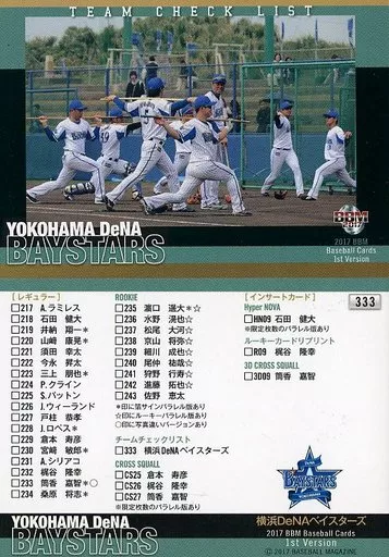 BBM/レギュラーカード/チェックリスト/横浜DeNAベイスターズ/BBM2017 ベースボールカード 1stバージョン 333[レギュラーカード]:横浜DeNAベイスターズ