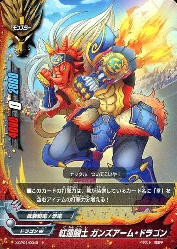 バディファイト/上/モンスター/ドラゴンW/[BF-X-CP01]バッツ キャラクターパック第1弾「めっちゃ!! 100円ドラゴン」 X-CP01/0049[上]:紅蓮闘士 ガンズアーム・ドラゴン(ガチレア仕様)