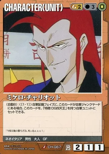 分類:茶/レア度:Uシリーズ:第25弾 双極の閃光商品解説■すべてがリアルな機動戦士ガンダムTCG!登場MS、登場人物はもちろん、作戦名、戦法、コロニー落としの要素までガンダム戦史を忠実に再現!ガンダムファンであれば、ライトな方からヘビーな方まで十分楽しめる、全く新しい「ゲーム」の形、それが二人用の本格的な戦術級対戦TCG「ガンダムウォー」です!