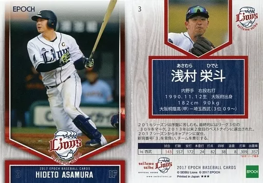 スポーツ/レギュラーカード/EPOCH ベースボールカード 2017 埼玉西武ライオンズ 3 [レギュラーカード] : 浅村栄斗(打者)(全身)