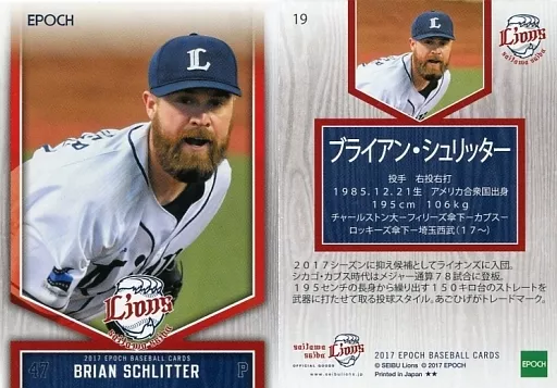 スポーツ/レギュラーカード/EPOCH ベースボールカード 2017 埼玉西武ライオンズ 19 [レギュラーカード] : シュリッター(投球)(バストアップ)