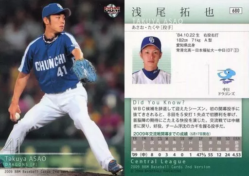 BBM/レギュラーカード/中日ドラゴンズ/BBM2009 ベースボールカード 2ndバージョン 680[レギュラーカード]:浅尾拓也