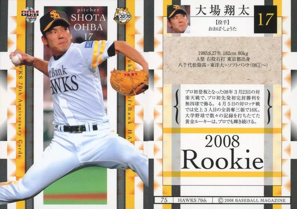 BBM/レギュラーカード/BBM2008 南海・ダイエー・ソフトバンクホークス70周年記念カード 75[レギュラーカード]:大場翔太
