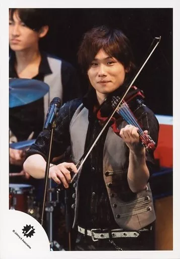 生写真(ジャニーズ)/アイドル/Question? Question?/後藤泰観/ライブフォト・上半身・衣装黒グレー・バイオリン・体左向き・スタンドマイク/公式生写真
