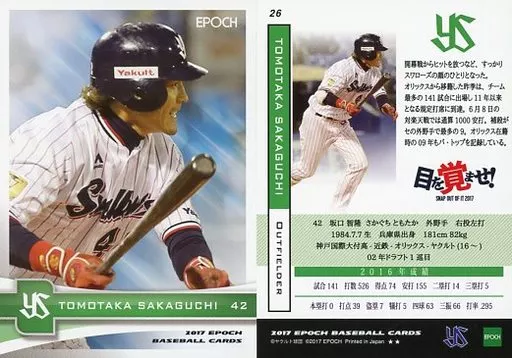 スポーツ/レギュラーカード/EPOCH ベースボールカード 2017 東京ヤクルトスワローズ 26 [レギュラーカード] : 坂口智隆(★★)