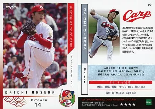 スポーツ/レギュラーカード/EPOCH ベースボールカード 2017 広島東洋カープ 03 [レギュラーカード] : 大瀬良大地(★★★★)