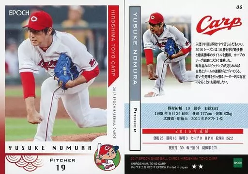 スポーツ/レギュラーカード/EPOCH ベースボールカード 2017 広島東洋カープ 06 [レギュラーカード] : 野村祐輔(★★)