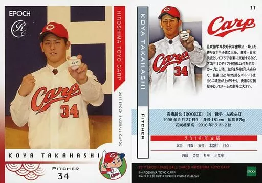 スポーツ/レギュラーカード/EPOCH ベースボールカード 2017 広島東洋カープ 11 [レギュラーカード] : 高橋昂也
