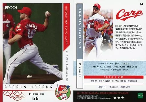 スポーツ/レギュラーカード/EPOCH ベースボールカード 2017 広島東洋カープ 16 [レギュラーカード] : ヘーゲンズ(★★★)
