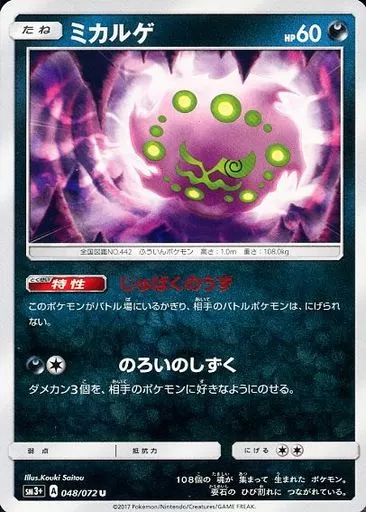 分類:悪/レア度:Uシリーズ:サン&ムーン 強化拡張パック ひかる伝説商品解説■ポケモンカードゲームに「ひかる伝説」が登場!ゲームでは低確率でしか手に入らない色違いのポケモンをイメージしたレアカード、「ひかるポケモン」が登場。過去のシリーズと比較して、バトル場にすぐ出せる「たねポケモン」やバトルを有利に進めるために必要な「トレーナーズ」のカードを多めに収録。