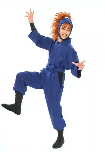 生写真(男性)/俳優 久下恭平(鉢屋三郎)/全身・衣装青・両手上げ・右足上げ・背景白・キャラクターショット/「ミュージカル 忍たま乱太郎 第8弾 再演 がんばれ五年生!技あり、術あり、初忍務!!」トレーディングブロマイド
