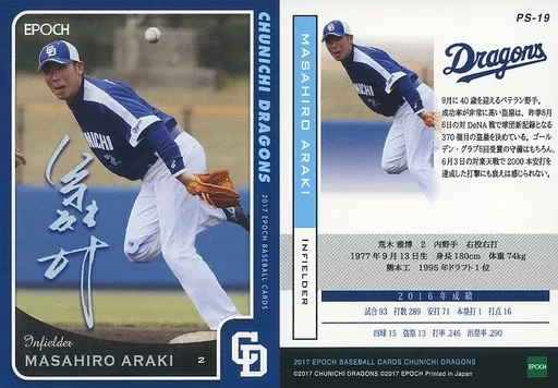 スポーツ/レギュラーパラレルカード/EPOCH ベースボールカード 2017 中日ドラゴンズ PS-19 [レギュラーパラレルカード] : 荒木雅博(プリントサイン入り)