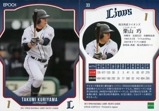 スポーツ/レギュラーカード/埼玉西武ライオンズ/EPOCH ベースボールカード 2017 パシフィク・リーグ 33 [レギュラーカード] : 栗山巧