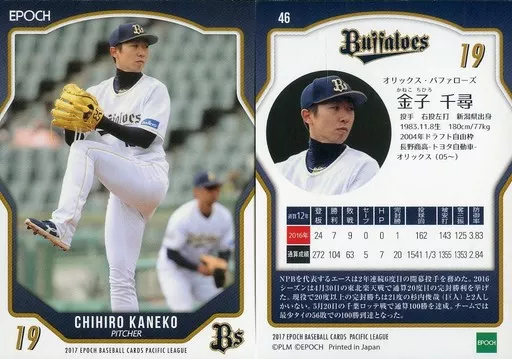 スポーツ/レギュラーカード/オリックス・バファローズ/EPOCH ベースボールカード 2017 パシフィク・リーグ 46 [レギュラーカード] : 金子千尋