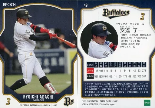 スポーツ/レギュラーカード/オリックス・バファローズ/EPOCH ベースボールカード 2017 パシフィク・リーグ 49 [レギュラーカード] : 安達了一