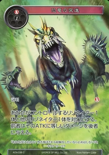 フォース オブ ウィル/C/スペル/炎/零夜クラスタ 第1弾ブースターパック「革命前夜」 ACN-036[C]:(Foil)恐竜の突進
