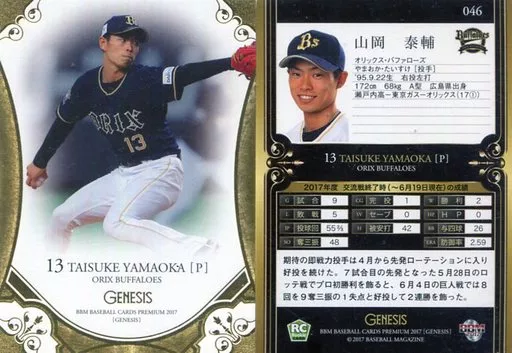 BBM/レギュラーカード/オリックス・バファローズ/BBM2017 ジェネシス 046[レギュラーカード]:山岡泰輔