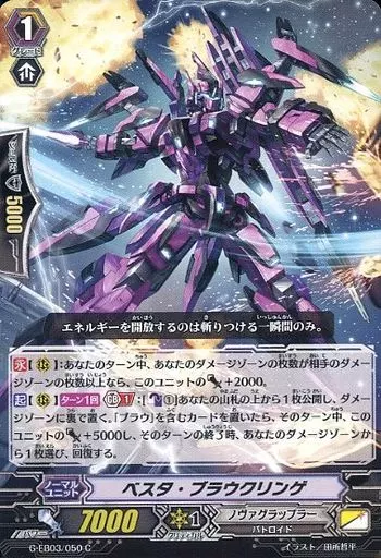 分類:ノーマルユニット/レア度:Cシリーズ:ヴァンガードG エクストラブースター 第3弾「The GALAXY STAR GATE」商品解説■ヴァンガードは1対1の対戦型カードゲームだ!カードを中心にアニメ・コミックなどのメディアミックスを展開しているぞ!