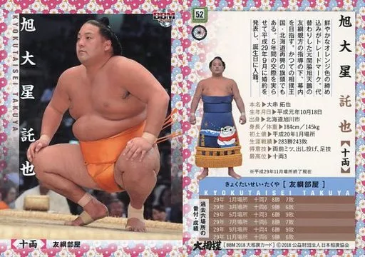 BBM/レギュラーカード/十両/BBM2018 大相撲カード 52 [レギュラーカード] : 旭大星 託也