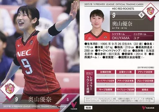 スポーツ/レギュラーカード/2017/18 V・プレミアリーグ女子公式トレーディングカード RG 09 [レギュラーカード] : 奥山優奈