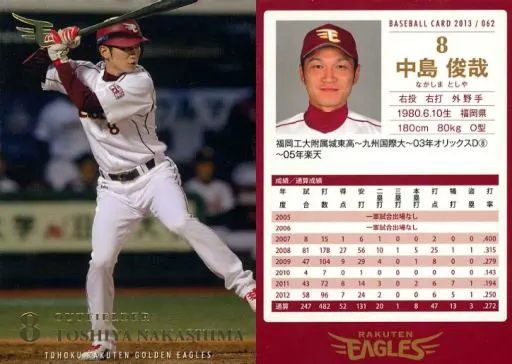 スポーツ/レギュラーカード/東北楽天ゴールデンイーグルス ベースボールカード2013 62 [レギュラーカード] : 中島俊哉