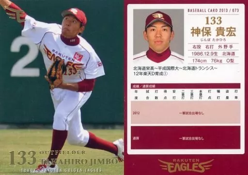 スポーツ/レギュラーカード/東北楽天ゴールデンイーグルス ベースボールカード2013 73 [レギュラーカード] : 神保貴宏