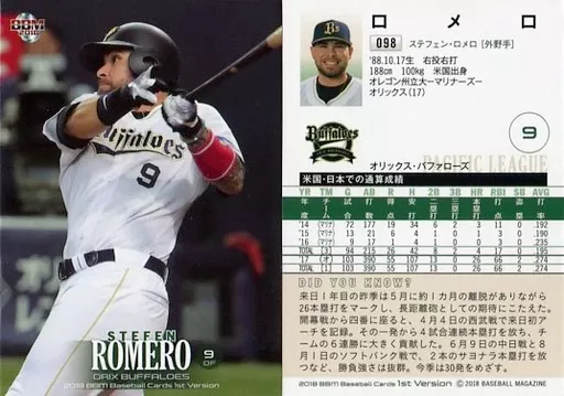 BBM/レギュラーカード/オリックス・バファローズ/BBM2018 ベースボールカード 1stバージョン 098 [レギュラーカード] : ロメロ
