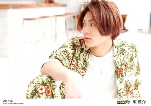 生写真(男性)/俳優 東啓介/横型・膝上・座り・衣装白.緑・右手膝上・「2017.06」/WE SHOPオフィシャルブロマイド~2017年6月~