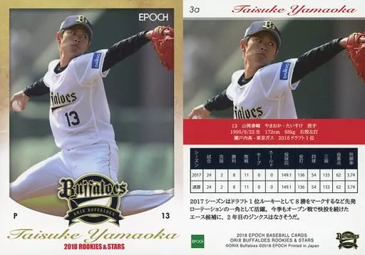 スポーツ/レギュラーカード/オリックス・バファローズ/2018 オリックス・バファロース ROOKIES&STARS 3a [レギュラーカード] : 山岡泰輔