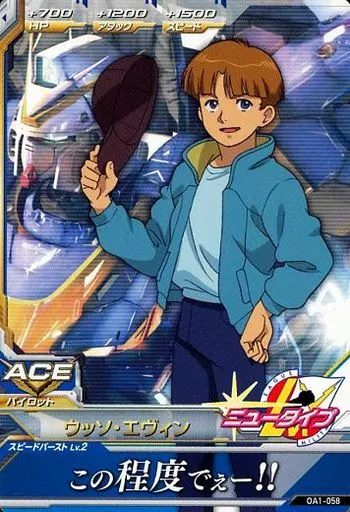 分類:パイロット/レア度:Cシリーズ:OPERATION ACE 1弾商品解説■ガンダムトライエイジとはモビルスーツカード3枚、パイロットカード3枚の計6枚のカードで3機編成の小隊を組んで戦う進化系ガンダムカードバトルだ!