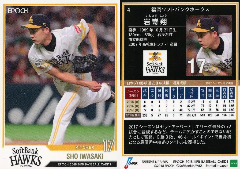 スポーツ/レギュラーカード/福岡ソフトバンクホークス/EPOCH 2018 NPB プロ野球カード 4 [レギュラーカード] : 岩嵜翔(パラレル版)