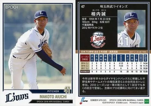 スポーツ/レギュラーカード/埼玉西武ライオンズ/EPOCH 2018 NPB プロ野球カード 47 [レギュラーカード] : 相内誠