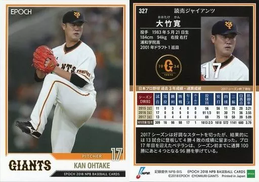 スポーツ/レギュラーカード/読売ジャイアンツ/EPOCH 2018 NPB プロ野球カード 327 [レギュラーカード] : 大竹寛