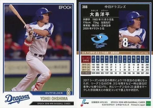 スポーツ/レギュラーカード/中日ドラゴンズ/EPOCH 2018 NPB プロ野球カード 388 [レギュラーカード] : 大島洋平