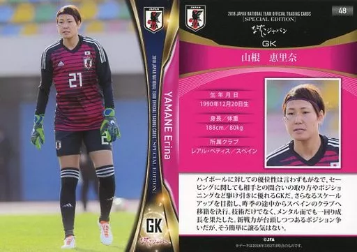 スポーツ/レギュラーカード/なでしこジャパン/2018 サッカー日本代表オフィシャルトレーディングカード スペシャルエディション 48 [レギュラーカード] : 山根恵里奈