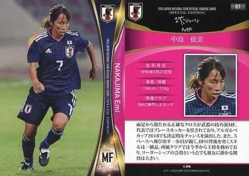 スポーツ/レギュラーカード/なでしこジャパン/2018 サッカー日本代表オフィシャルトレーディングカード スペシャルエディション 61 [レギュラーカード] : 中島依美