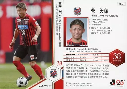 スポーツ/レギュラーカード/2018 Jリーグ オフィシャルトレーディングカード 007 [レギュラーカード] : 菅大輝