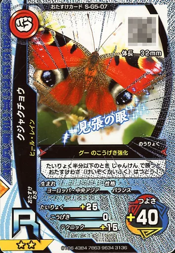 ムシキング/R/おたすけカード/激闘5弾 S-G5-07[R]:クジャクチョウ(キラ)