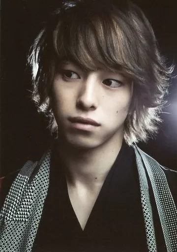 生写真(男性)/俳優 杉江大志(市村鉄之助)/バストアップ・衣装黒・白・和服・目線左・口閉じ・背景黒/舞台「駆けはやぶさ ひと大和」ブロマイド