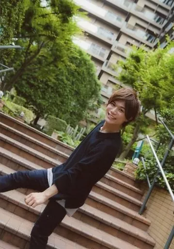 生写真(男性)/俳優 SUNPLUS/蒼木陣/全身・衣装黒・両手下げ・左手前・右足上げ・体左向き・階段・斜め・野外/「SUNPLUS トークイベント」生写真セット4