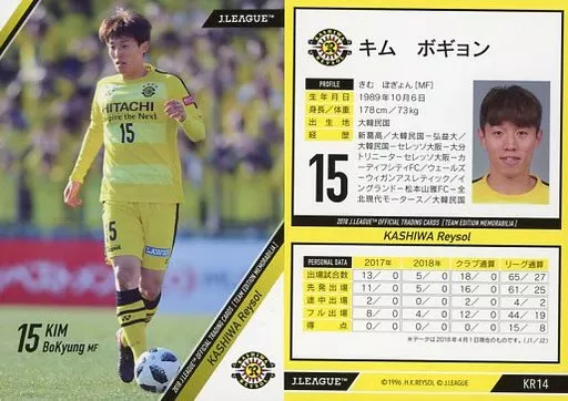 スポーツ/レギュラーカード/2018Jリーグオフィシャルトレーディングカード[チームエディション・メモラビリア]柏レイソル KR14 [レギュラーカード] : キム ボギョン
