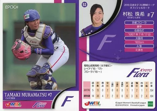スポーツ/レギュラーカード/京都フローラ/2018 日本女子プロ野球リーグ オフィシャルカード 53 [レギュラーカード] : 村松珠希