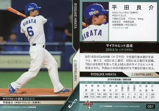 BBM/レギュラーカード/記録の殿堂/中日ドラゴンズ/BBM2018 FUSION 081 [レギュラーカード] : 平田良介(打者)
