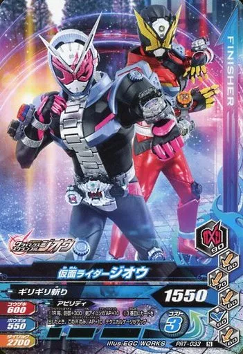 分類:フィニッシャー/レア度:Nシリーズ:ニンテンドースイッチソフト『仮面ライダー クライマックススクランブル ジオウ』早期購入特典商品解説■3枚のライダーカードでバトル!歴代ライダーが勢揃い!キミだけの仮面ライダー「ガンバライダー」に変身しよう!
