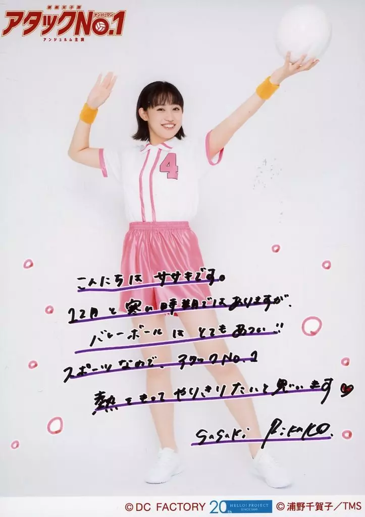生写真(ハロプロ)/アイドル/アンジュルム アンジュルム/佐々木莉佳子(真木村京子)/全身・ユニフォーム・背景白・印刷メッセージ入り・2Lサイズ/演劇女子部「アタックNo.1」ソロ2L判生写真セットA