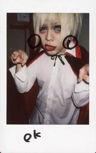 生写真(男性)/ヴィジュアル系バンド/Shellmy ☆シェルミィ/豹/直筆メッセージ入り「OK」・上半身・衣装白黒赤・左向き・両手指差し/生チェキ