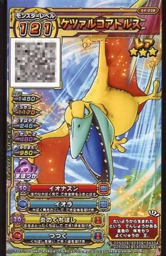 ドラゴンクエストモンスターバトルスキャナー/レア/S/モンスターチケット/戦え!ドラゴンクエスト スキャンバトラーズ超4弾 S4-038[レア]:ケツァルコアトルス
