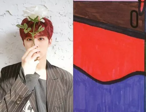 コレクションカード(男性)/CD「INVITATION」特典KEYフォトカード UP10TION/ウシン(WOOSHIN)/右手花・顔の前掲げ・背景白・裏面パズルカード/CD「INVITATION」特典KEYフォトカード