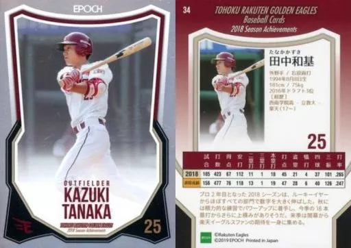 スポーツ/レギュラーカード/東北楽天ゴールデンイーグルス2018シーズンアチーブメント 34 [レギュラーカード] : 田中和基